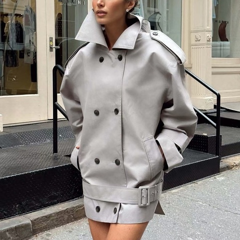 Oudina Mới Hợp Thời Trang Mùa Đông Màu Rắn Lỏng Lẻo Không Thường Xuyên Ngắn Áo Gió Áo Khoác Rãnh Phụ Nữ Áo Gió Áo Khoác Dành Cho Phụ Nữ